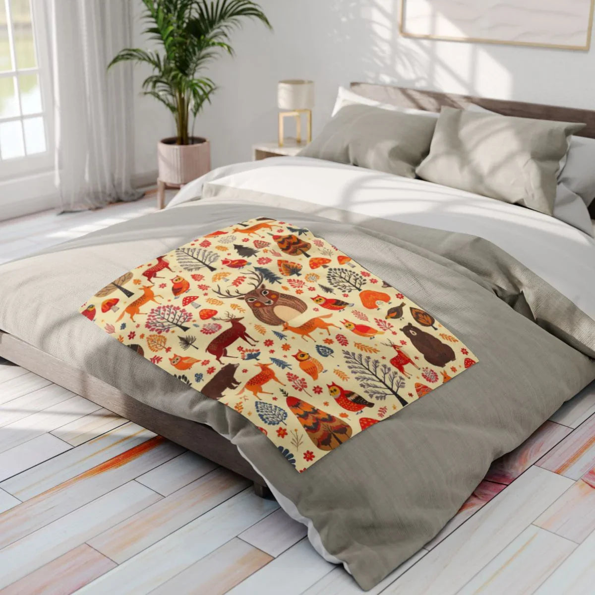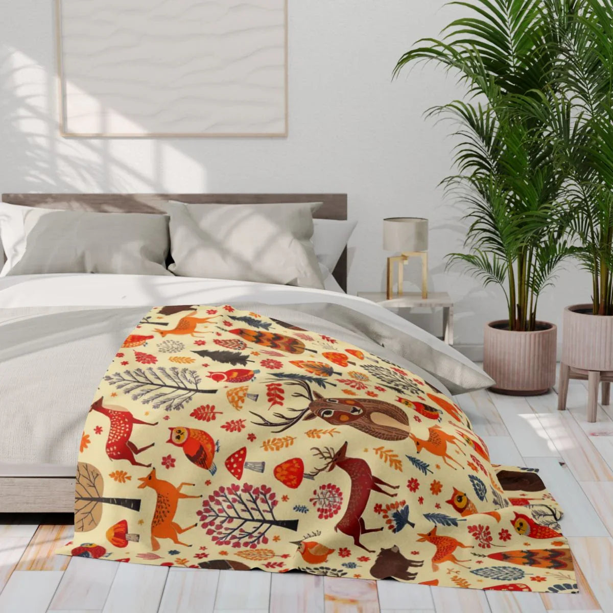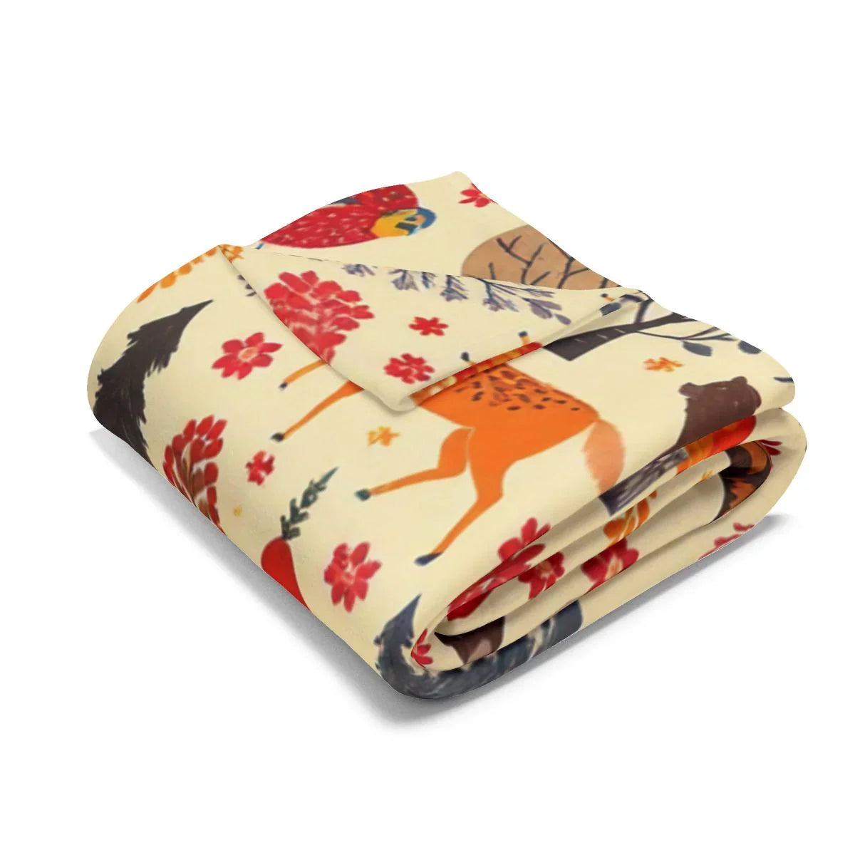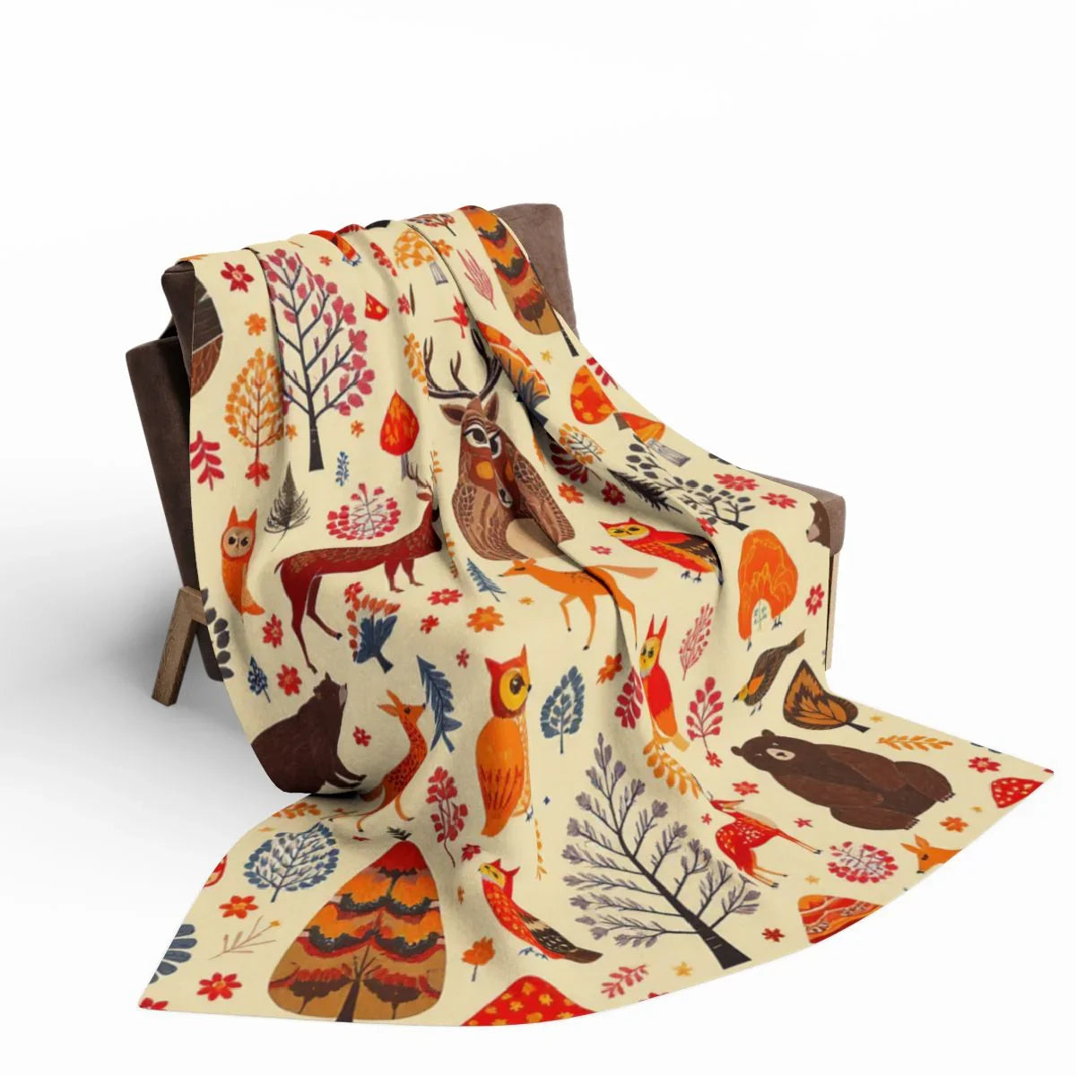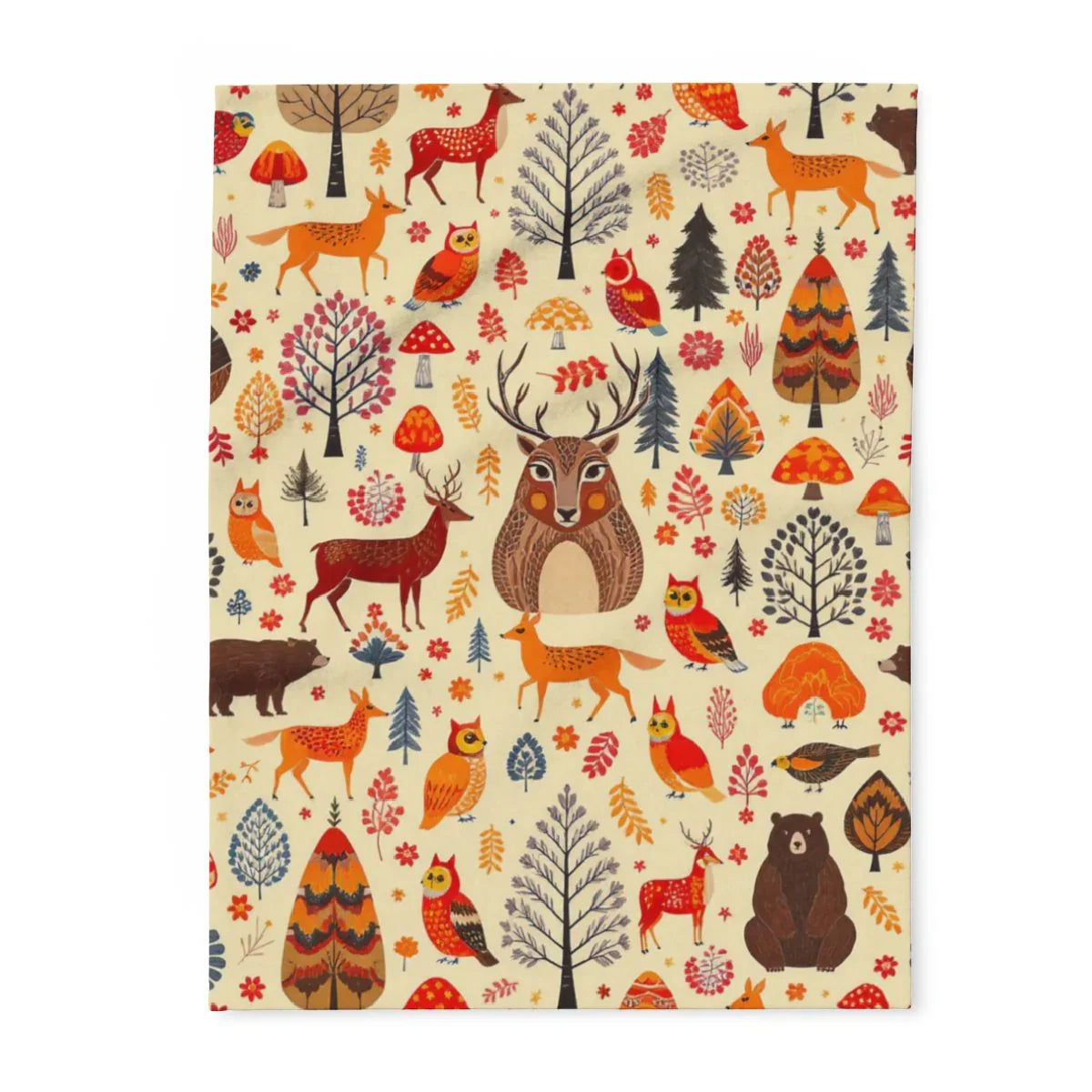 Autumnal Forest Animals and Flora Patterned Design Blanket