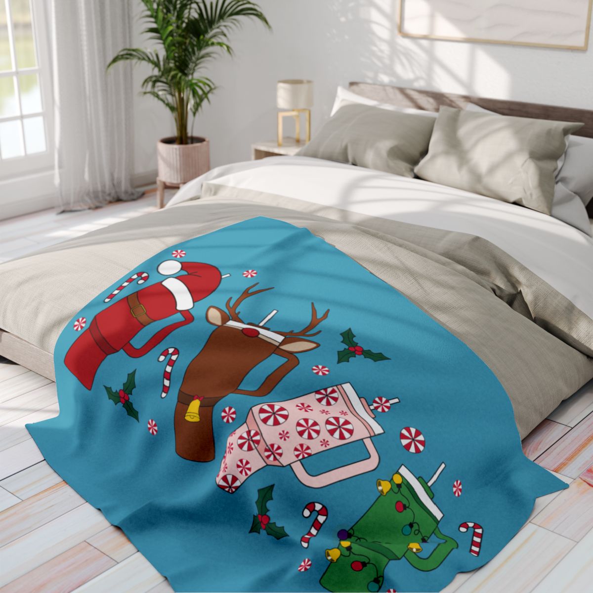 Festive Holiday Characters Tumblers Pattern Design Blanket
