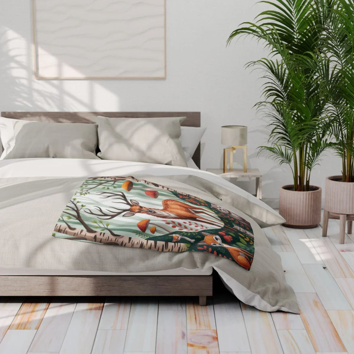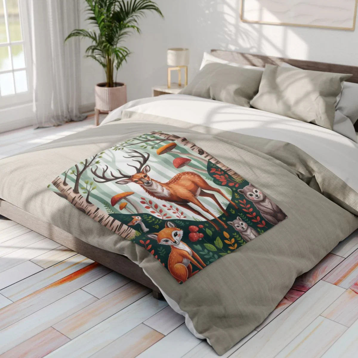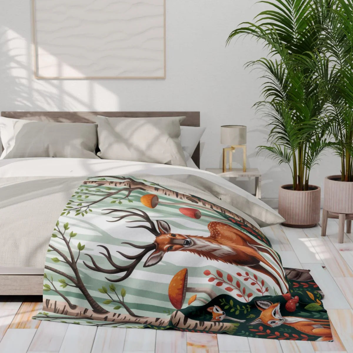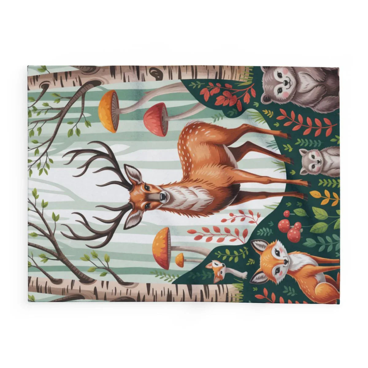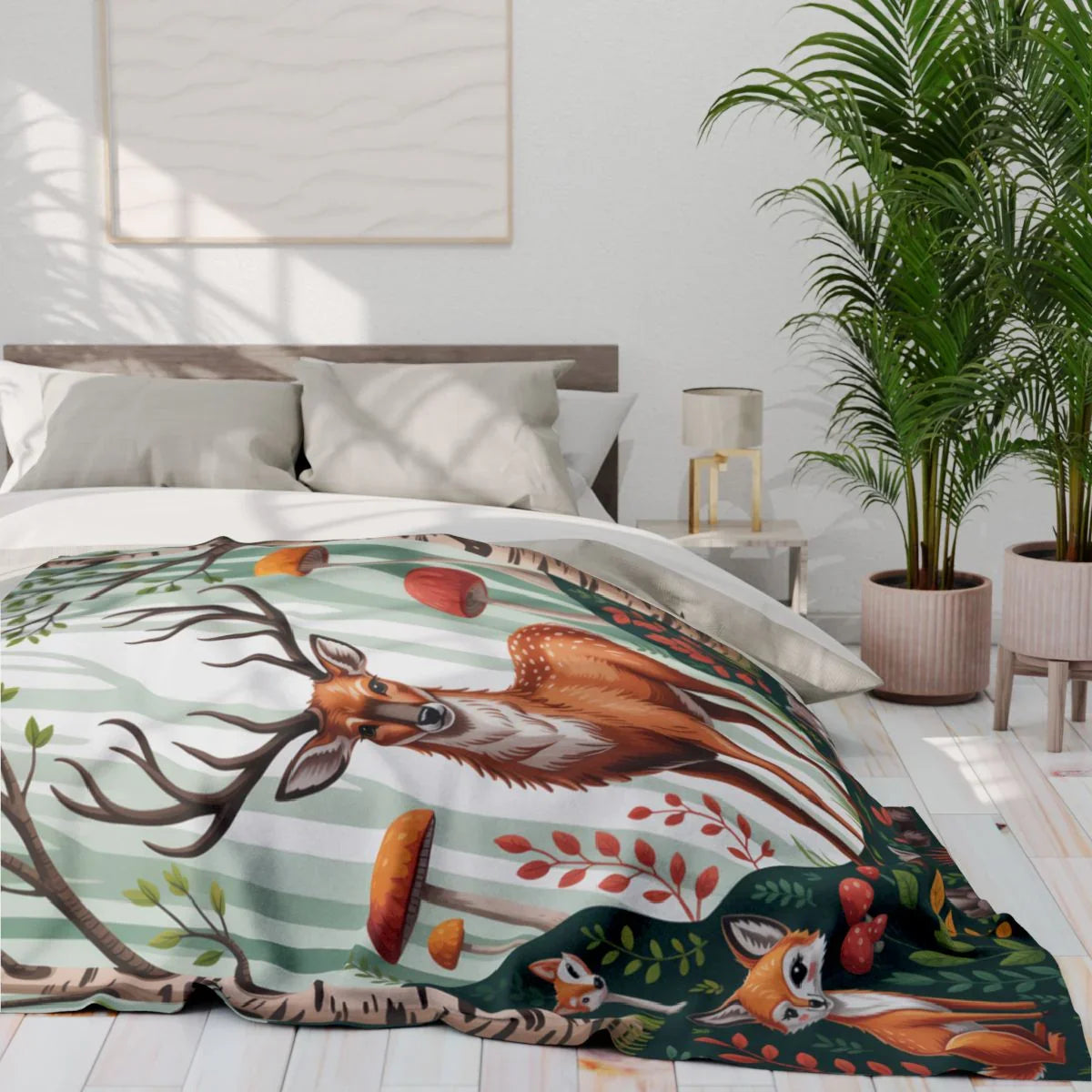 Forest Animals Deer Fox Wolf Bear Cartoon Illustration Blanket