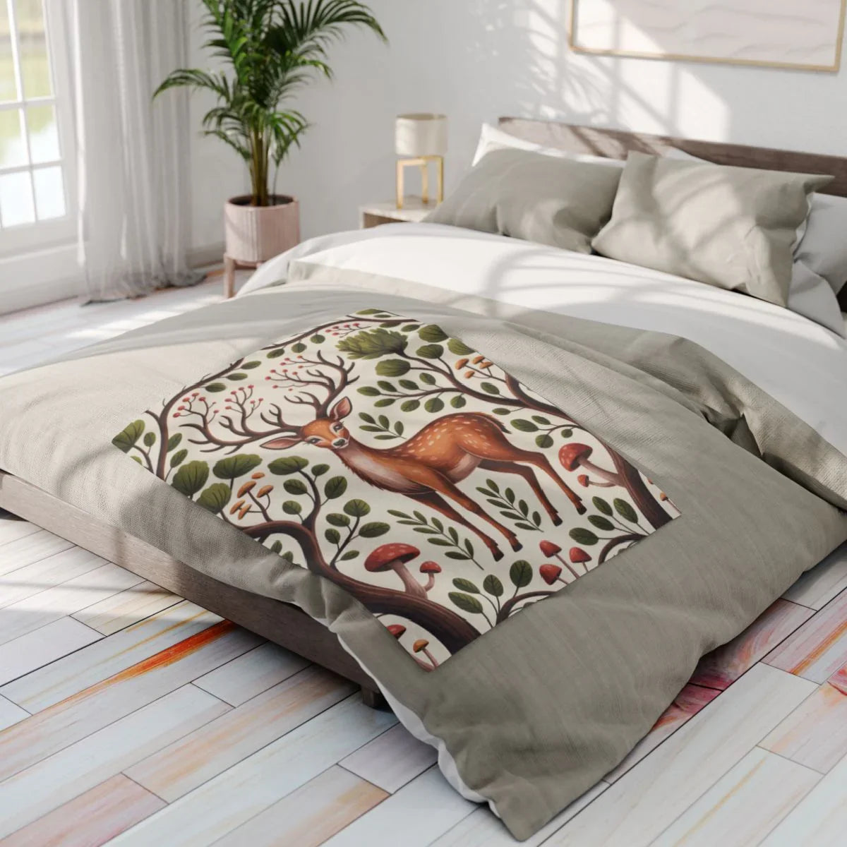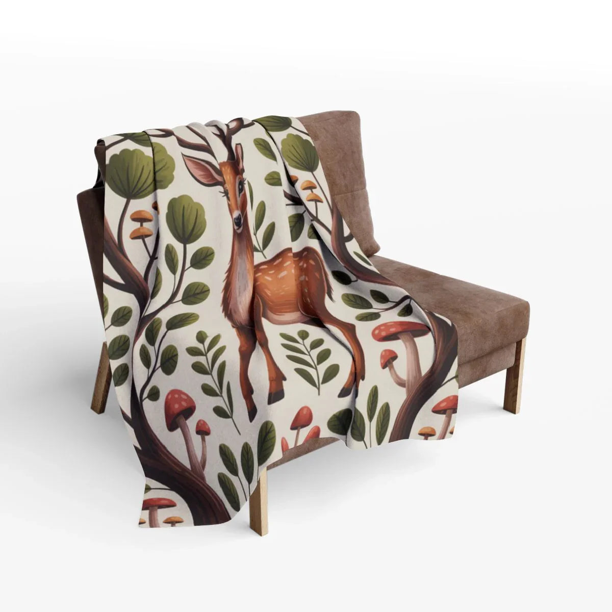This exquisite blanket features a detailed illustration of a deer surrounded by lush forest foliage and whimsical mushrooms. A perfect... Read more