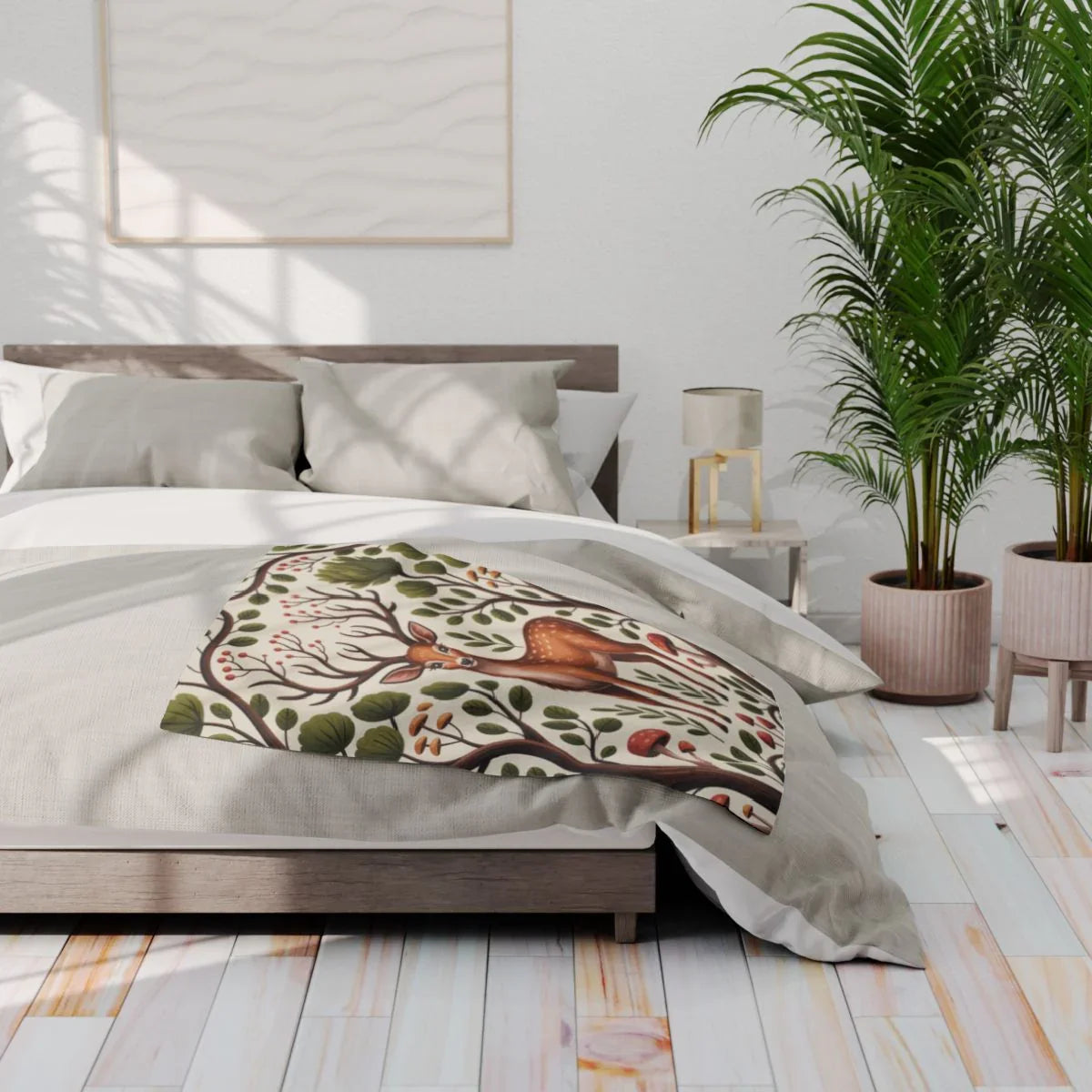 Majestic Deer Amidst Forest Flora Elegant Design Blanket