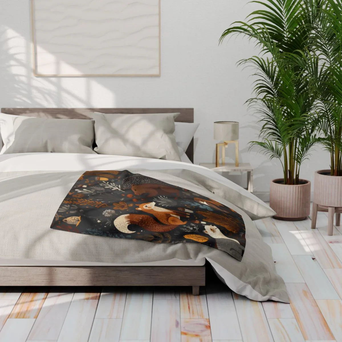 Woodland Creatures Animals Nature Pattern Art Design Blanket